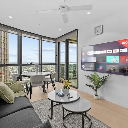 Este apartamento viene con una cocina completa, equipada con un lavaplatos y un horno. El aeropuerto Brisbane está a 18 minutos en coche, y la parada de autobús Eagle Street 153A, a unos minutos a pie del establecimiento.